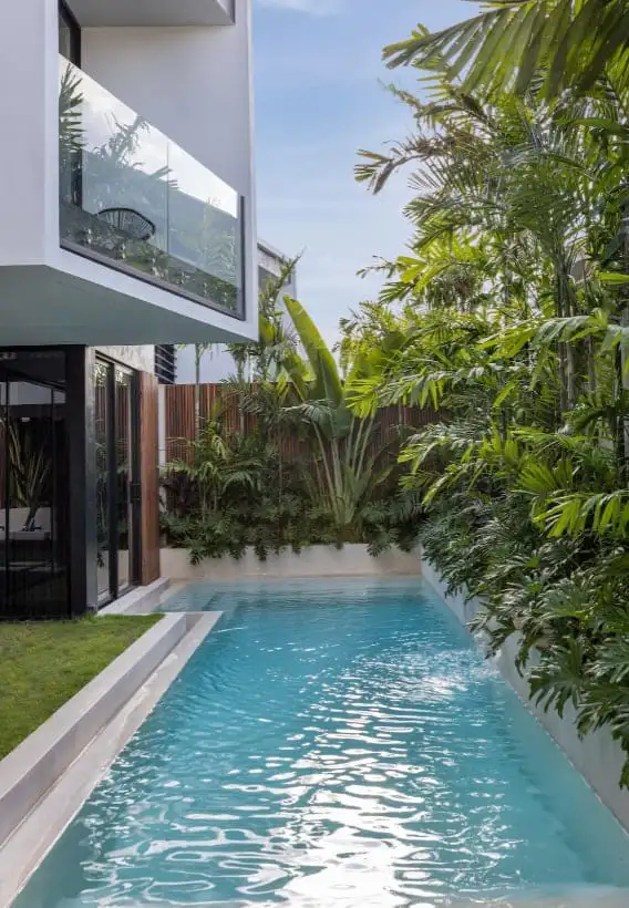 Alex Villas, desarrollada por Alex Villas Group, es una villa terminada de cuatro dormitorios con un diseño arquitectónico moderno, situada en la codiciada zona de Berawa, Canggu. Esta elegante residencia ofrece un equilibrio perfecto de privacidad y tranquilidad sin dejar de estar cerca del vibrante estilo de vida de Bali y de infraestructuras de primera calidad.