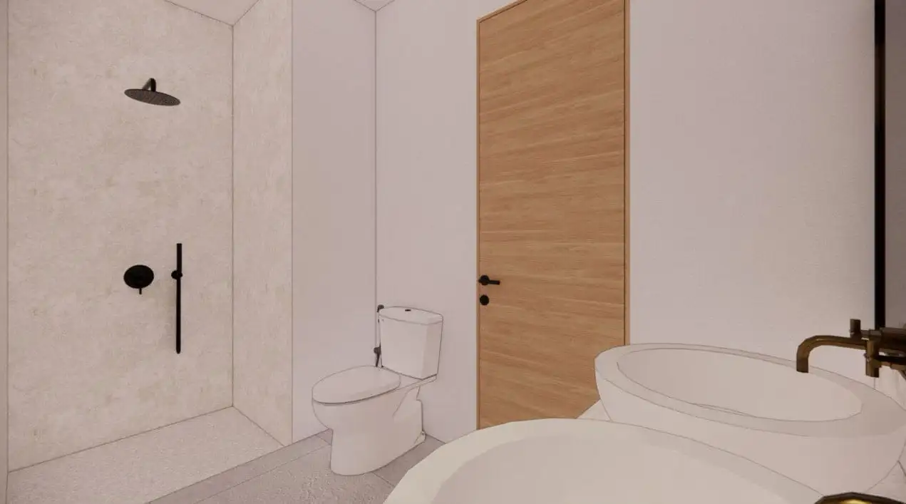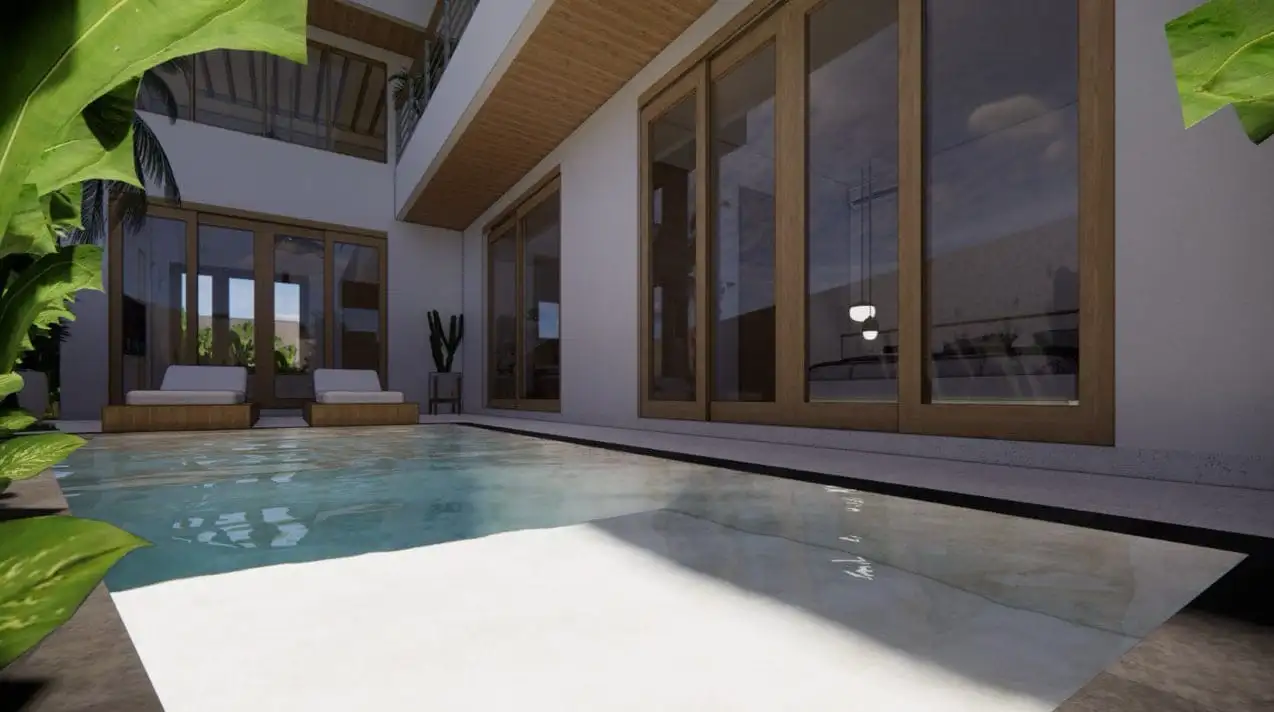 Cada villa cuenta con 3 dormitorios, 3 cuartos de baño, cocina totalmente equipada, zona de comedor, amplio salón, piscina privada, aparcamiento, balcón y un jardín paisajista con vistas a los arrozales. El complejo también incluye un parque infantil y una zona para tomar el sol. Villa jardín Waisya combina diseño moderno, privacidad y un entorno natural, ofreciendo un estilo de vida equilibrado en una de las zonas residenciales más deseadas de Padonan.