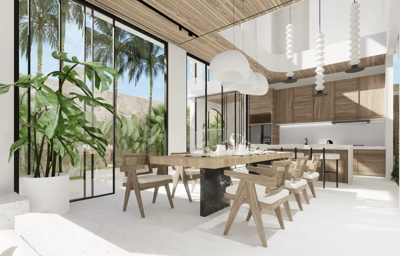 Balangan Villas is a stunning villa complex located in the Balangan area of Bali. The development features three-bedroom villas set on a gentle elevation, offering panoramic views of lush landscapes and the sparkling ocean. Each villa is thoughtfully designed with spacious living areas, modern kitchens, elegant dining spaces, and luxurious bathrooms, providing an exceptional balance of comfort and style. The elevated location ensures privacy while immersing residents in the natural beauty of Bali.