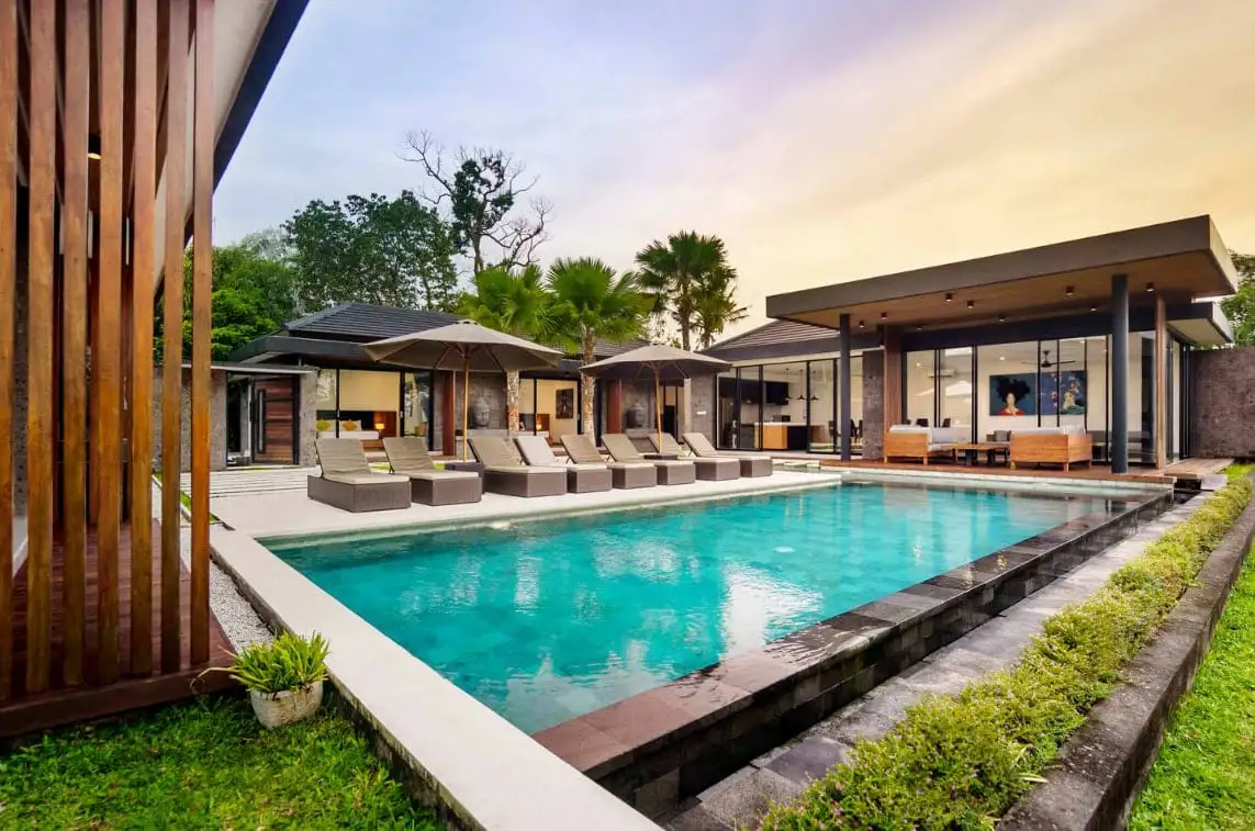 The villa features four elegant bedrooms with en-suite bathrooms, expansive living areas, a modern kitchen, and dining space. A private pool, terrace overlooking the garden, and a secure gated property provide comfort, privacy, and safety. This villa is perfect for those who value style, convenience, and a prestigious location, while also representing a smart investment in Bali real estate.