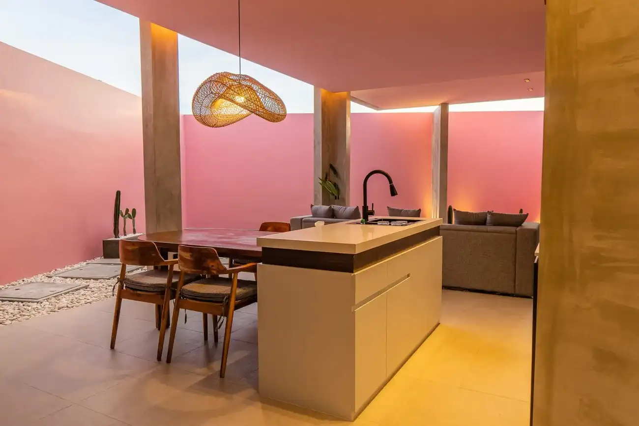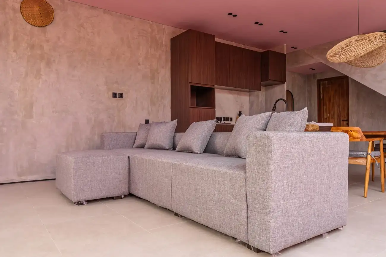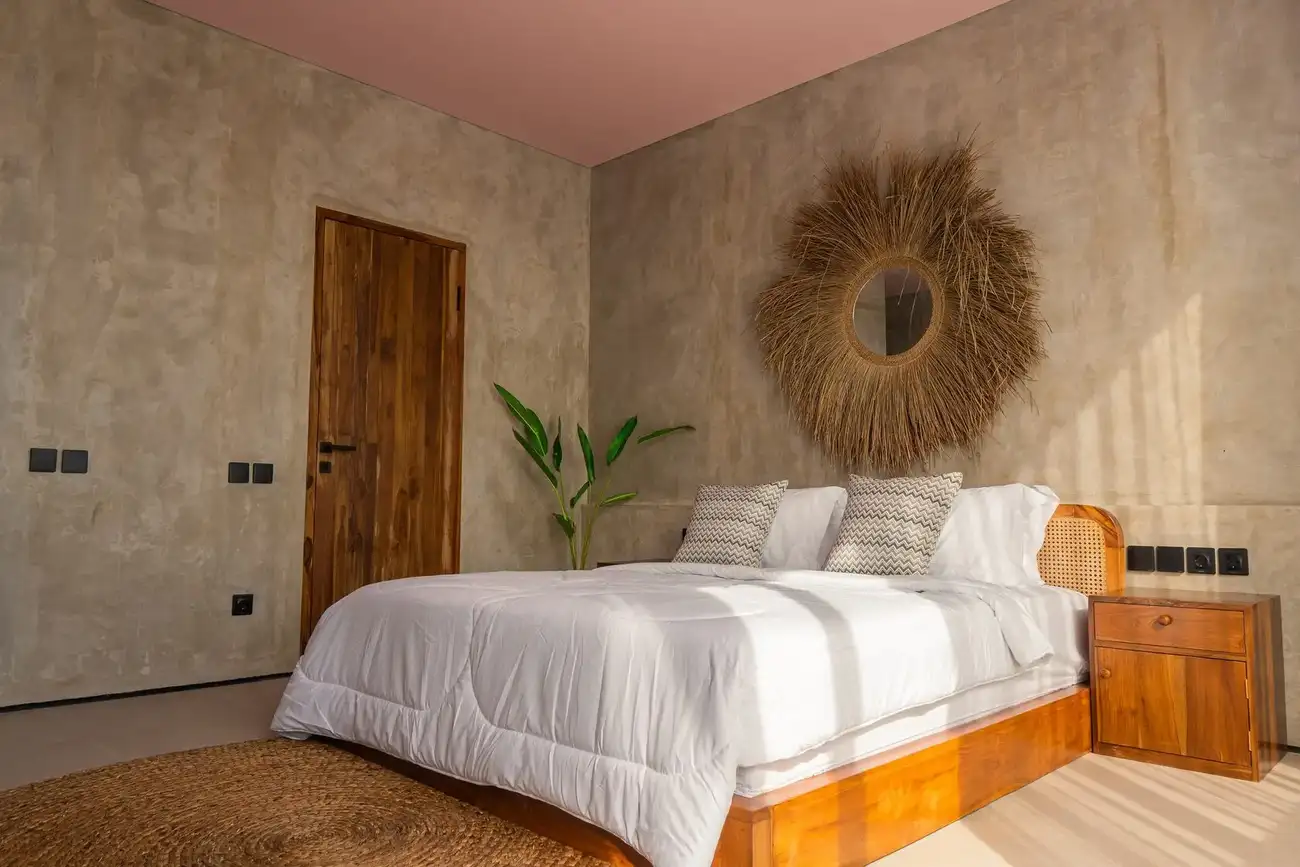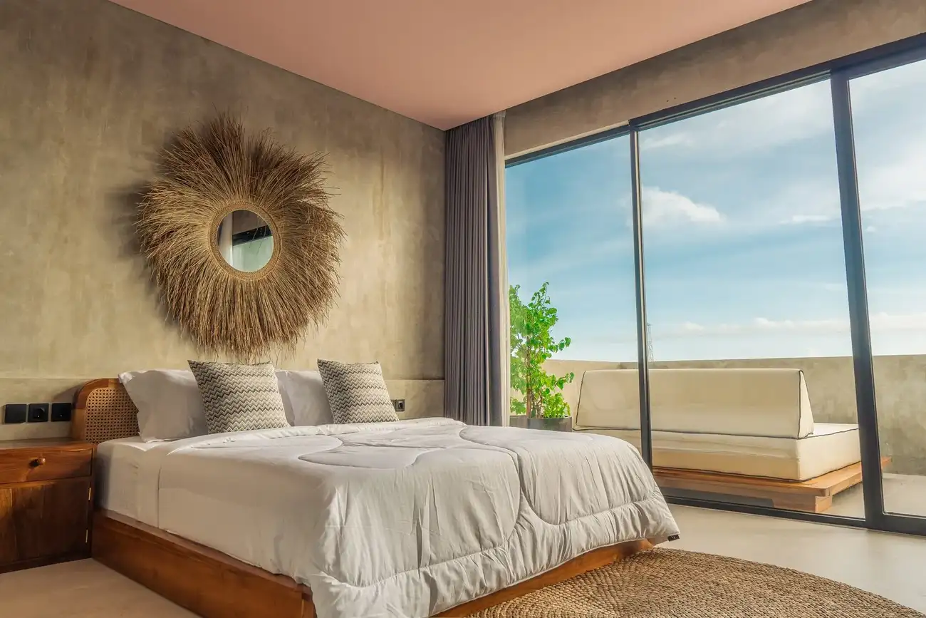 Tulum Villas is a perfect fusion of Balinese coziness and distinctive Mexican style, located in the scenic southern part of Bali — the Bukit Pandawa area, known for its ocean panoramas and secluded atmosphere. A spacious terrace, a uniquely shaped designer pool, and a stylish interior turn this villa into more than just a home — it’s a place made for living beautifully and sharing special moments. The interior is designed in light natural tones with an emphasis on textures, handcrafted details, and carefully selected furnishings, creating a sense of visual harmony and comfort.