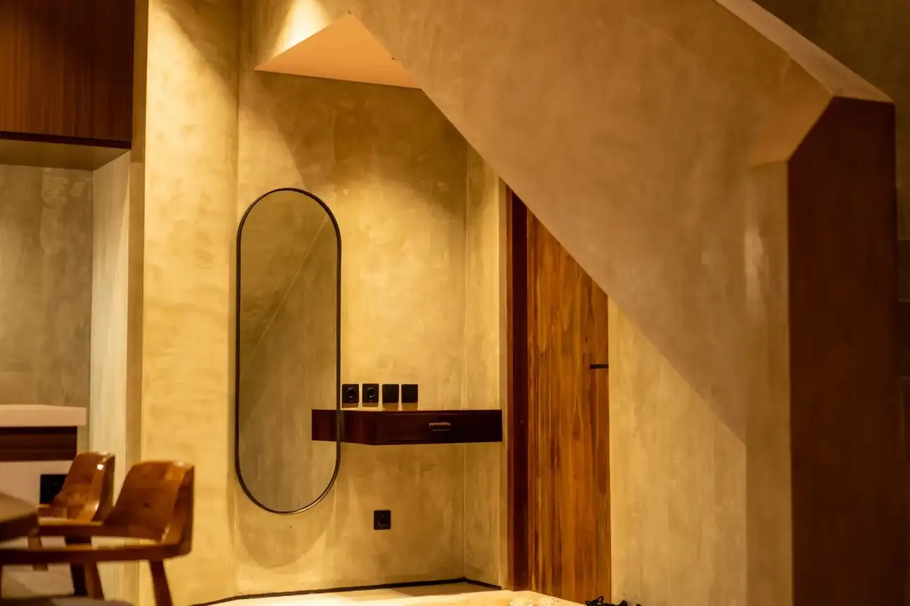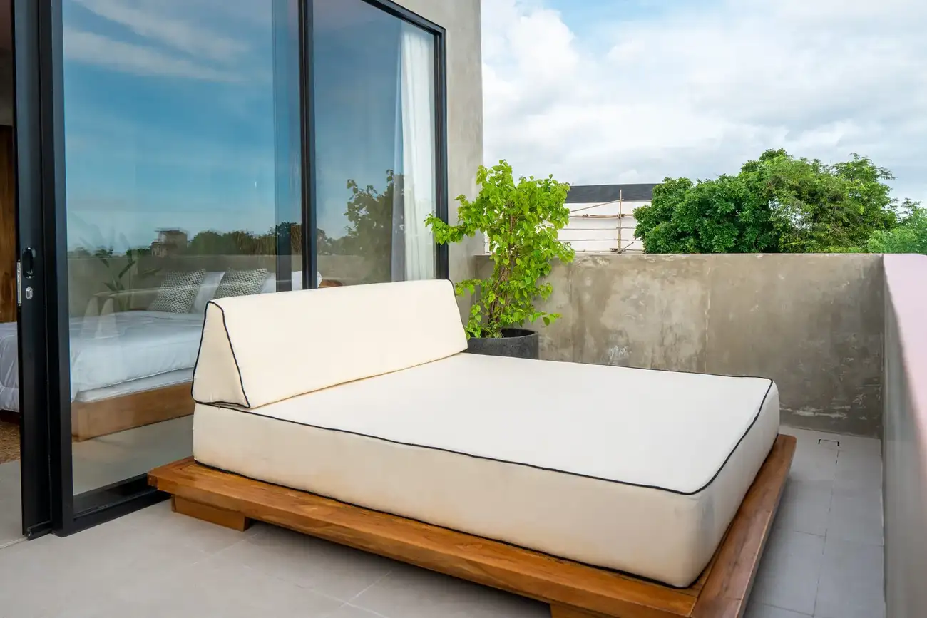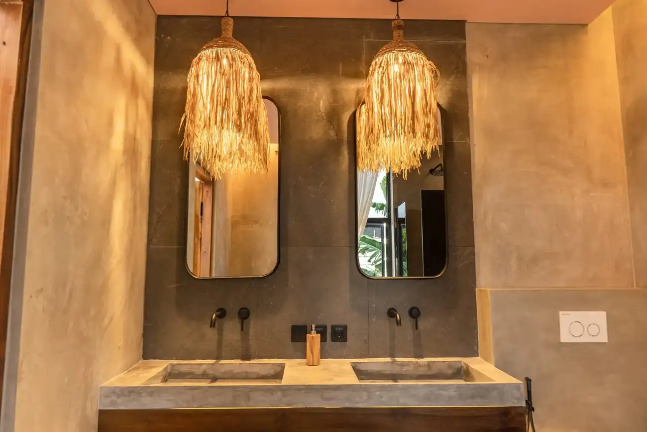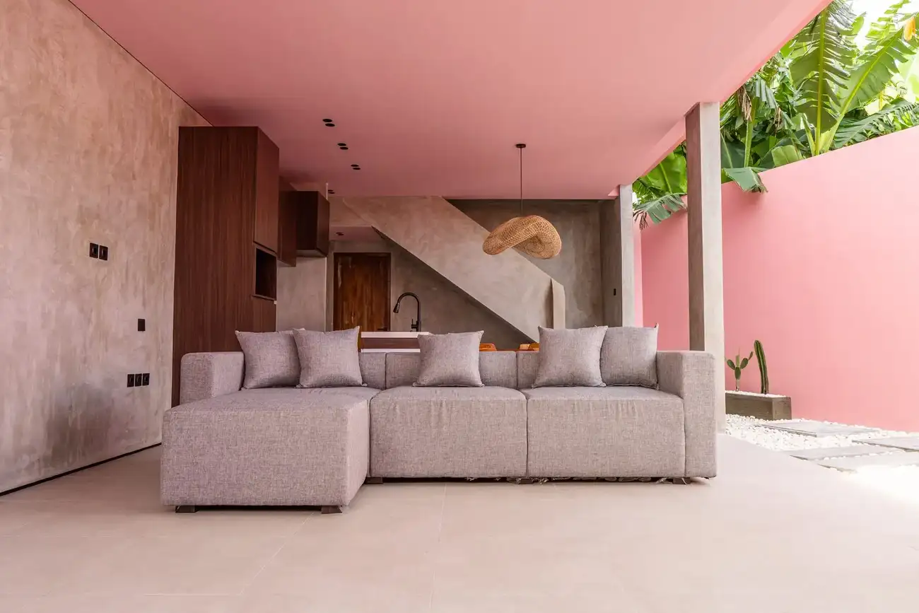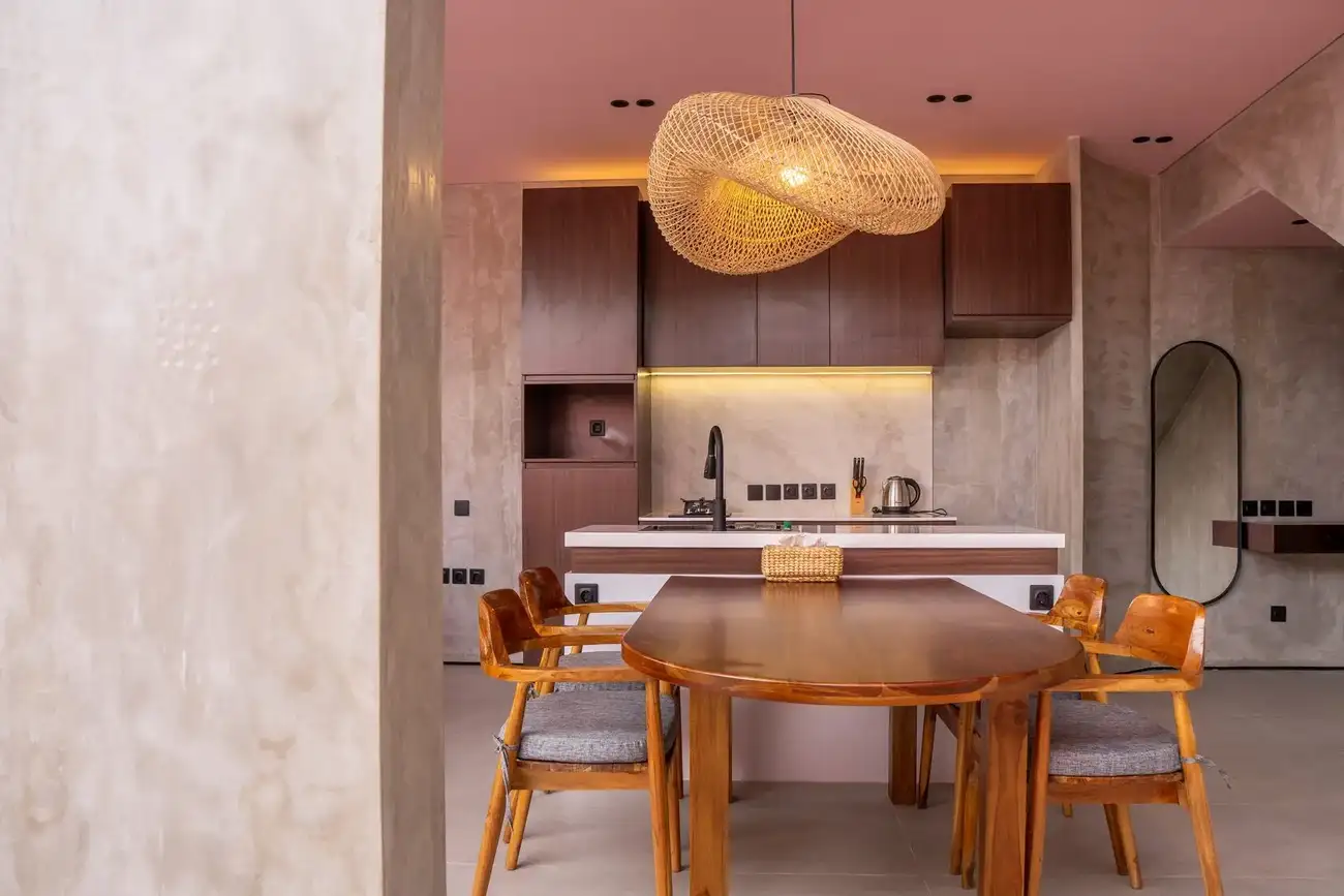 Tulum Villas is a perfect fusion of Balinese coziness and distinctive Mexican style, located in the scenic southern part of Bali — the Bukit Pandawa area, known for its ocean panoramas and secluded atmosphere. A spacious terrace, a uniquely shaped designer pool, and a stylish interior turn this villa into more than just a home — it’s a place made for living beautifully and sharing special moments. The interior is designed in light natural tones with an emphasis on textures, handcrafted details, and carefully selected furnishings, creating a sense of visual harmony and comfort.