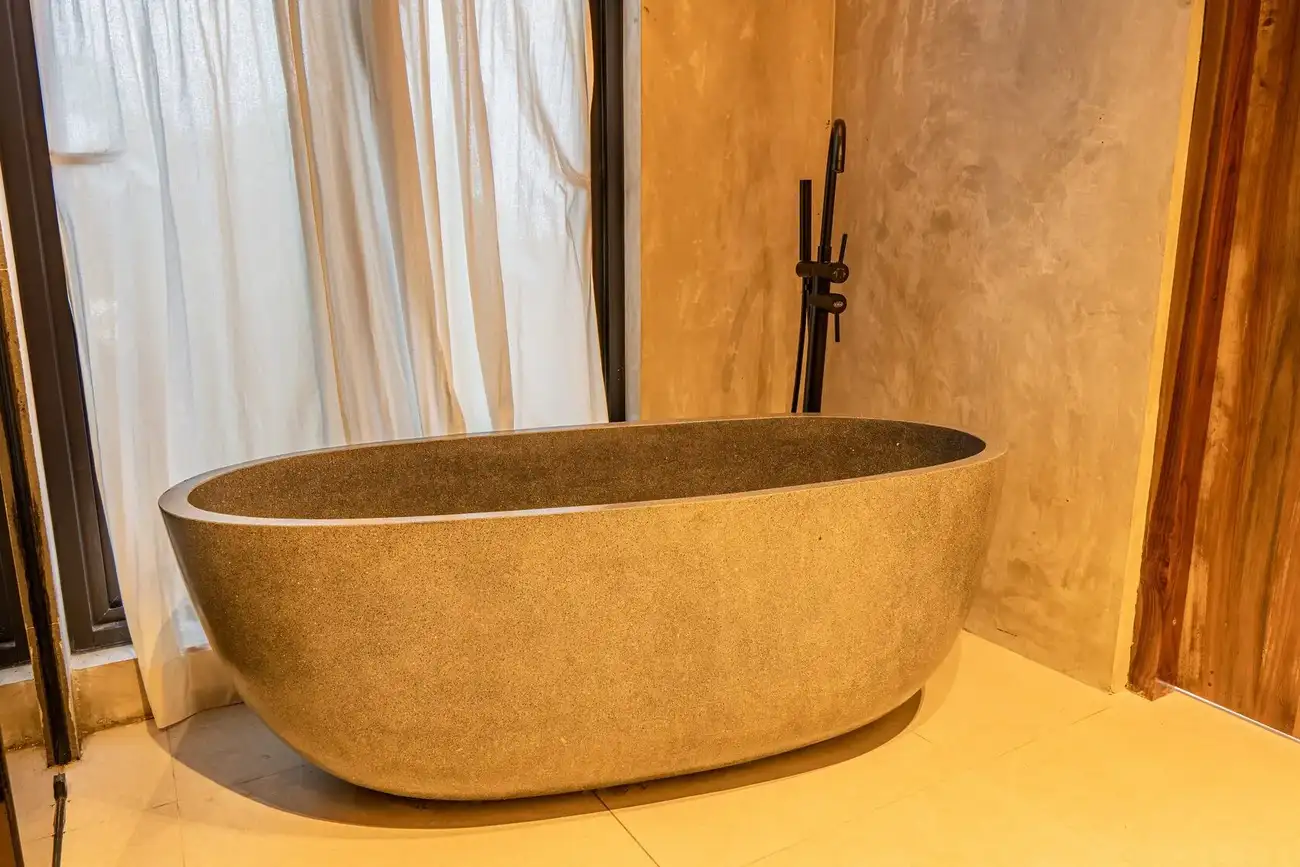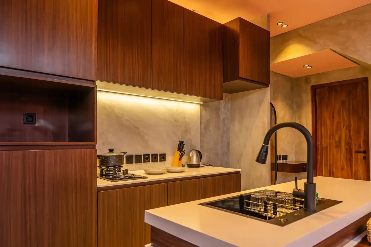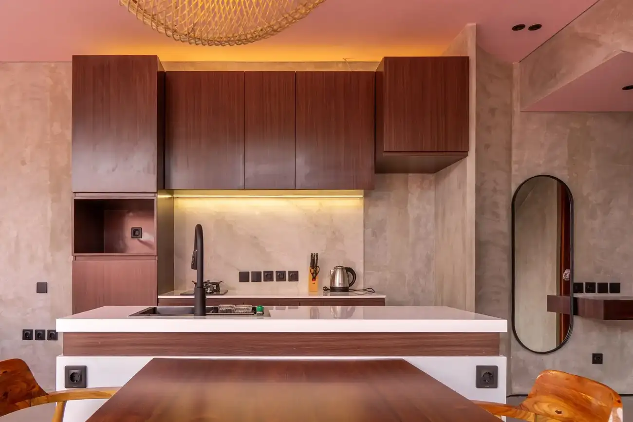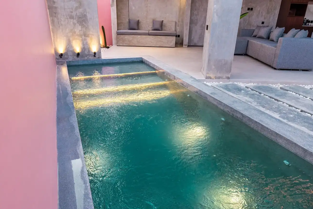 Tulum Villas is a perfect fusion of Balinese coziness and distinctive Mexican style, located in the scenic southern part of Bali — the Bukit Pandawa area, known for its ocean panoramas and secluded atmosphere. A spacious terrace, a uniquely shaped designer pool, and a stylish interior turn this villa into more than just a home — it’s a place made for living beautifully and sharing special moments. The interior is designed in light natural tones with an emphasis on textures, handcrafted details, and carefully selected furnishings, creating a sense of visual harmony and comfort.