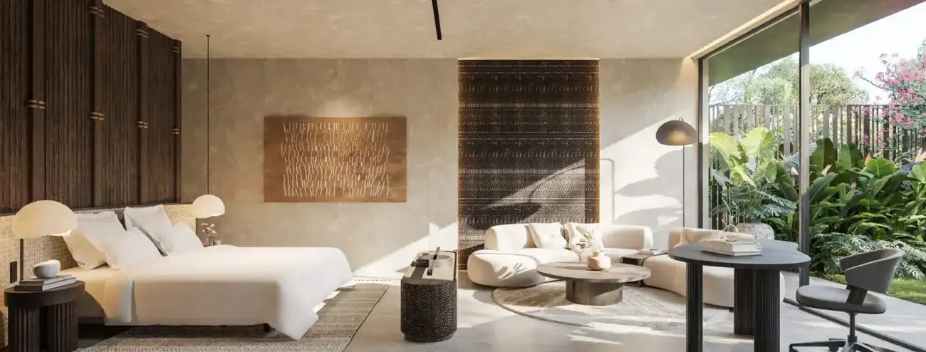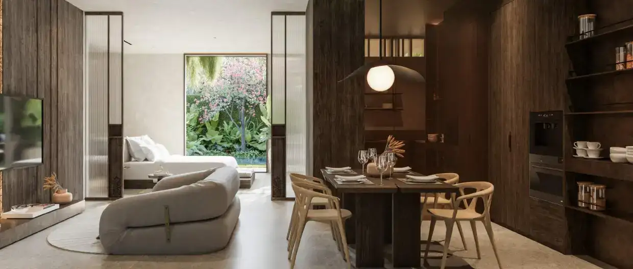 This premium residential complex, Address Bali, offers a unique combination of sophisticated design, thoughtful architecture, and five-star hotel-level service. Every detail is crafted to turn everyday life into pure enjoyment. Spacious studios and villas provide privacy, comfort, and aesthetic minimalism, while a panoramic elevator leads directly to the rooftop Japanese garden—a perfect spot to watch the sunset in absolute tranquility. Address Bali is ideal for those who value the balance of seclusion, luxury, and convenient access to the city’s vibrant infrastructure.