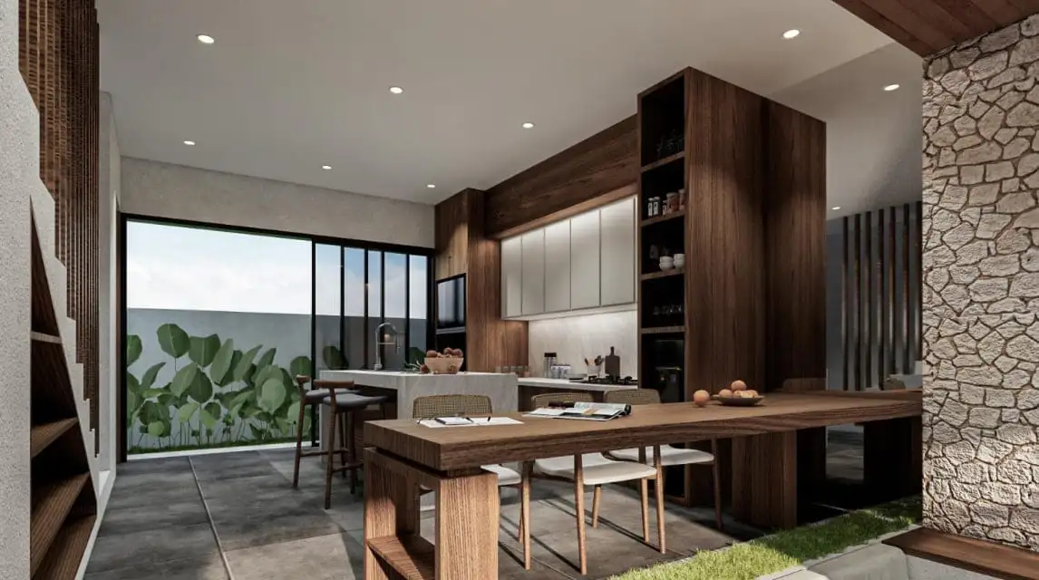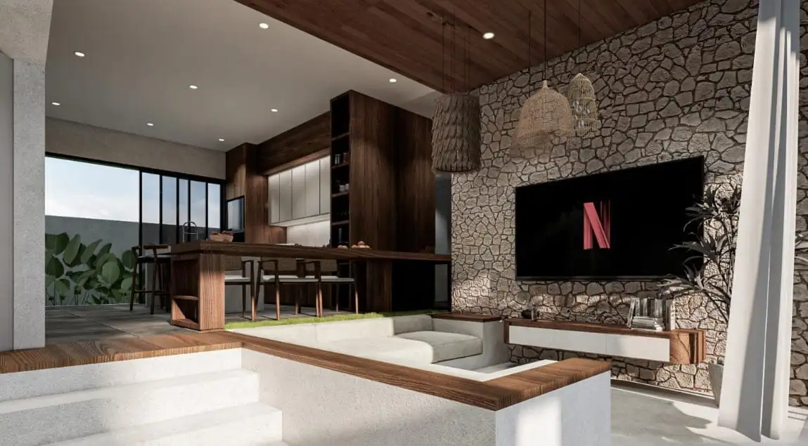 Bingin Bliss is a modern villa complex located in the Pecatu area of Bali, offering stylish 2-bedroom villas designed for comfortable living and relaxation. Each villa features a contemporary interior, spacious layout, fully equipped kitchen, cozy dining area, and 2.5 bathrooms, creating a functional and elegant living space ideal for both long-term stays and holidays.