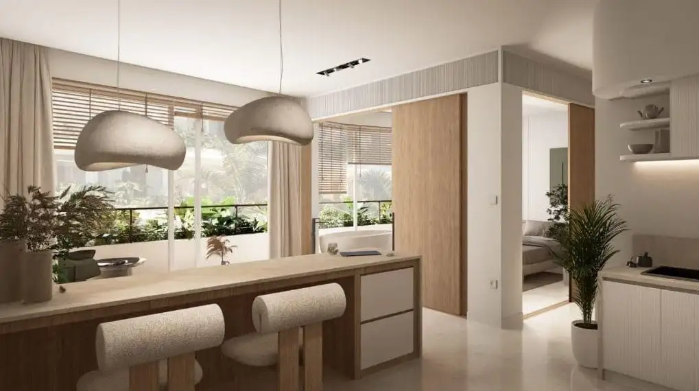 HOME HILLS В комплексе 35 продуманных до мелочей квартир, включая 31 двухкомнатную и 4 трехкомнатные, что позволяет жильцам выбрать планировку, наиболее соответствующую их образу жизни. Комплекс предлагает широкий спектр удобств, таких как бар и фуд-уголок, спа-салон, зона ресепшн, услуги консьержа, бассейн и просторная общественная парковка. Панорамные виды, развитая инфраструктура и спокойная атмосфера Улувату, HOME HILLS это привлекательный вариант для комфортного проживания или инвестиций на Бали.