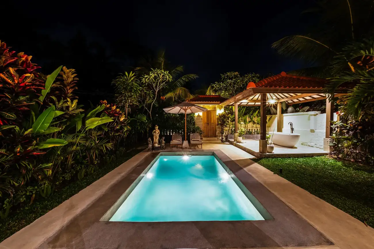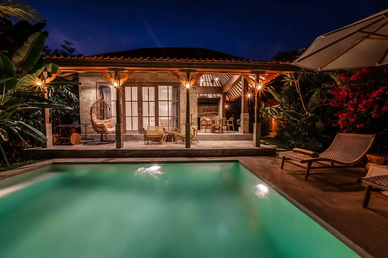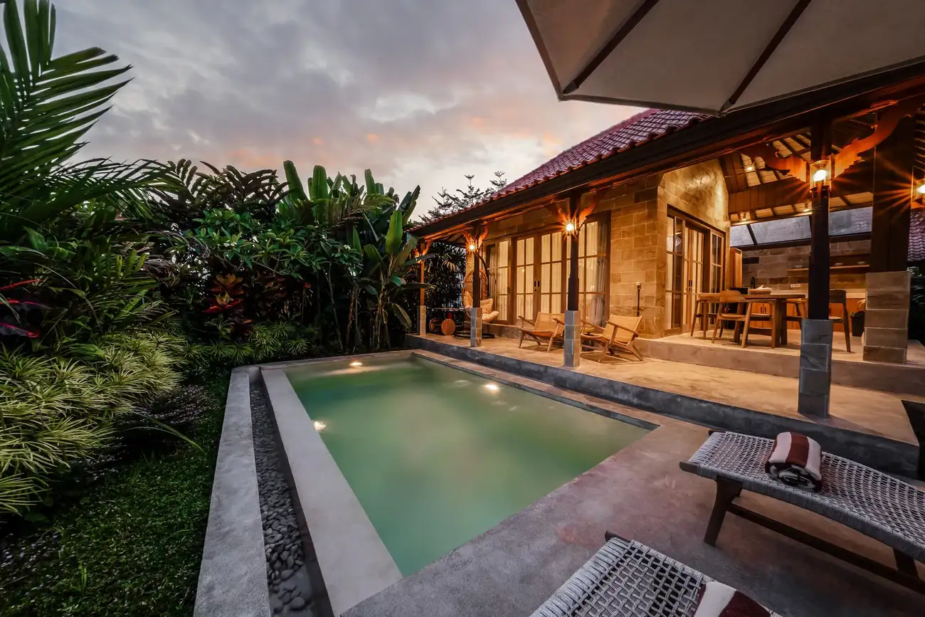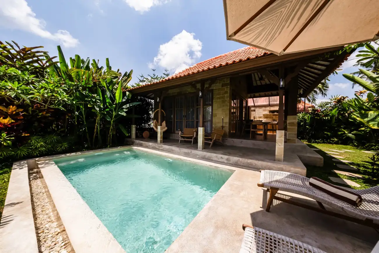 Вилла Ньяман это уютный и современный жилой проект, состоящий из двух вилл с одной спальней, расположенных в тихом районе всего в нескольких минутах езды от центра Убуда, Бали. Окруженные пышной тропической зеленью и бескрайними рисовыми полями, виллы предлагают идеальный баланс спокойствия и удобства. Несмотря на то, что виллы расположены рядом друг с другом, каждая из них имеет свой собственный сад и внутренний дворик, что создает настоящее ощущение уединения и личного пространства.