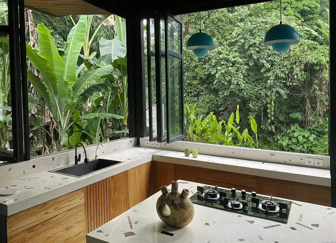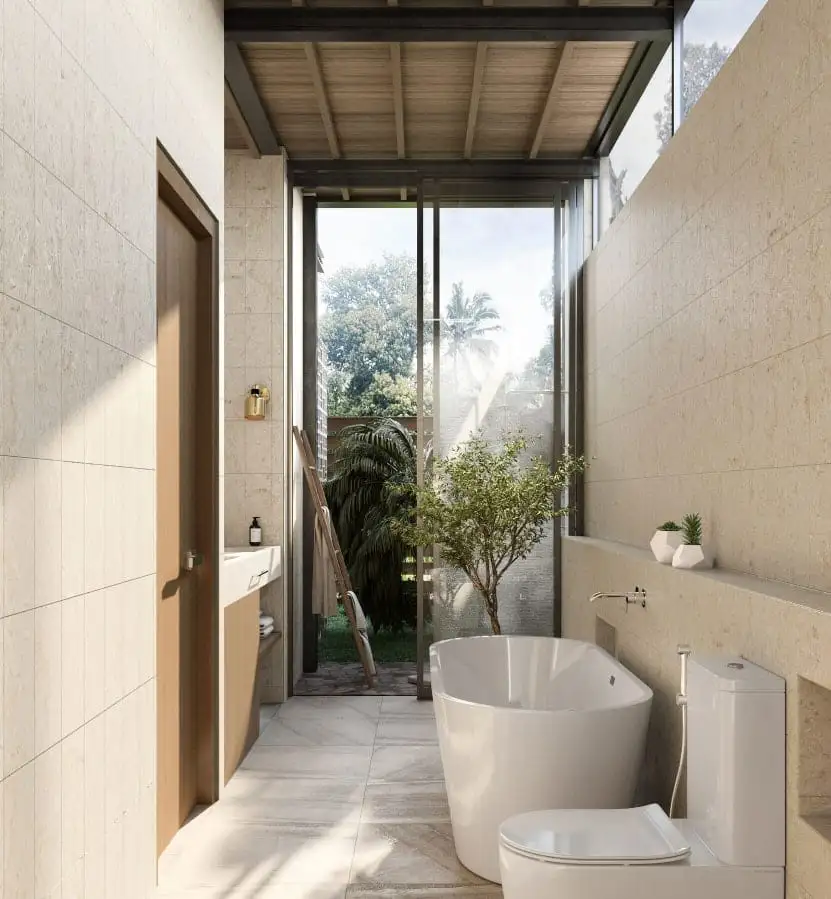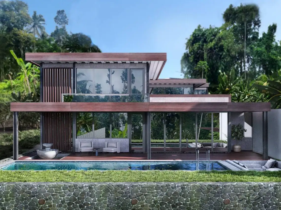 Виллы располагают 2 или 3 просторными спальнями, 3 или 4 современными ванными комнатами, гостиной открытой планировки с прямым выходом на террасу и полностью оборудованной кухней с обеденной зоной. В каждом доме есть частный бассейн с видом на джунгли (3×10 м или 3×11 м, в зависимости от планировки), парковка для двух автомобилей и велосипедов, а также возвышенность на холме, которая обеспечивает тишину, отсутствие шума от дороги и захватывающий вид на закат. Расположен на улице Тирта Тавар в северной части центрального Убуда, Близнецы Сочетает в себе спокойную обстановку и быстрый доступ к Парку Убуд, дворцу Убуд и рисовым террасам Тегалаланг, что делает его идеальным как для проживания, так и для инвестиций.